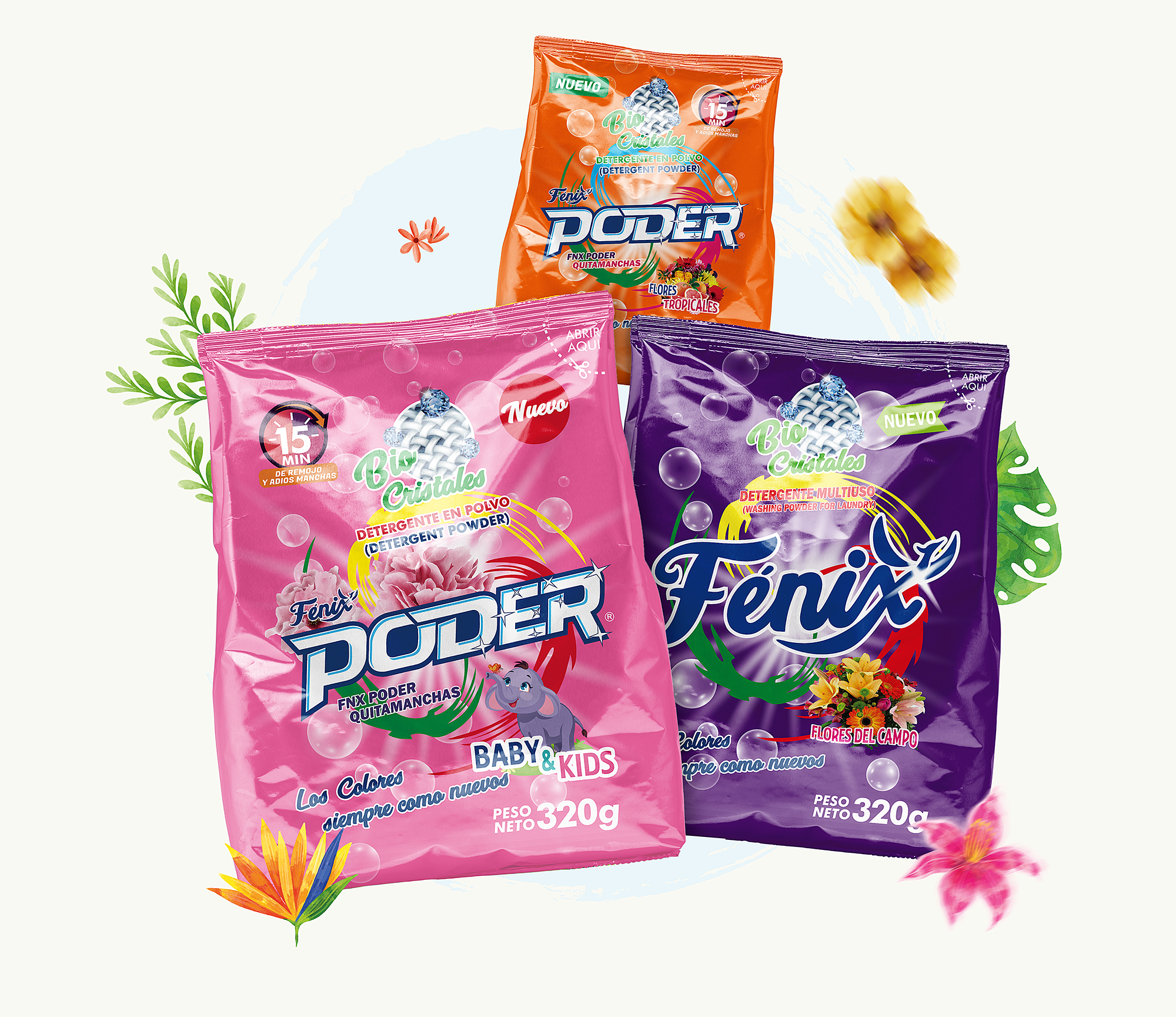 El detergente en polvo Fénix Poder deja tu ropa limpia, fresca y con una fragancia única en cada lavado. Su presentación de 320gr es práctica y compacta, perfecta para el uso diario o para llevar a cualquier lugar. A pesar de su tamaño, ofrece un gran poder de limpieza y un excelente rendimiento en cada carga.