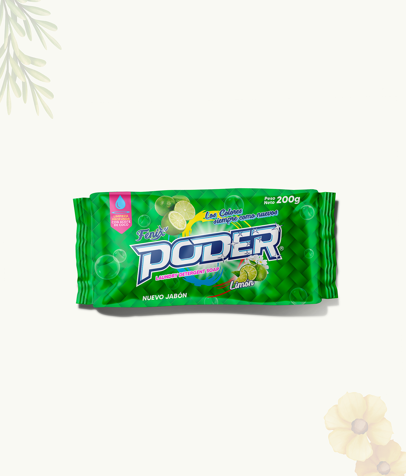 El jabón para ropa Fénix Poder ha sido formulado para remover la suciedad más difícil, cuidando tus prendas en cada lavado. Ideal para uso diario, su poder limpiador actúa incluso en agua fría, dejando la ropa limpia, fresca y con un agradable aroma.